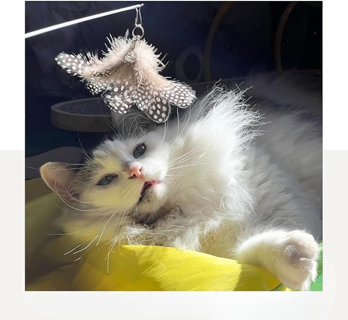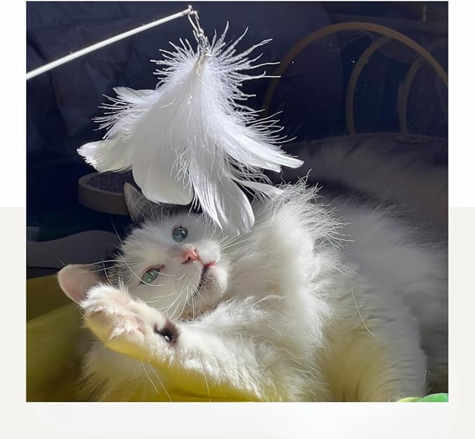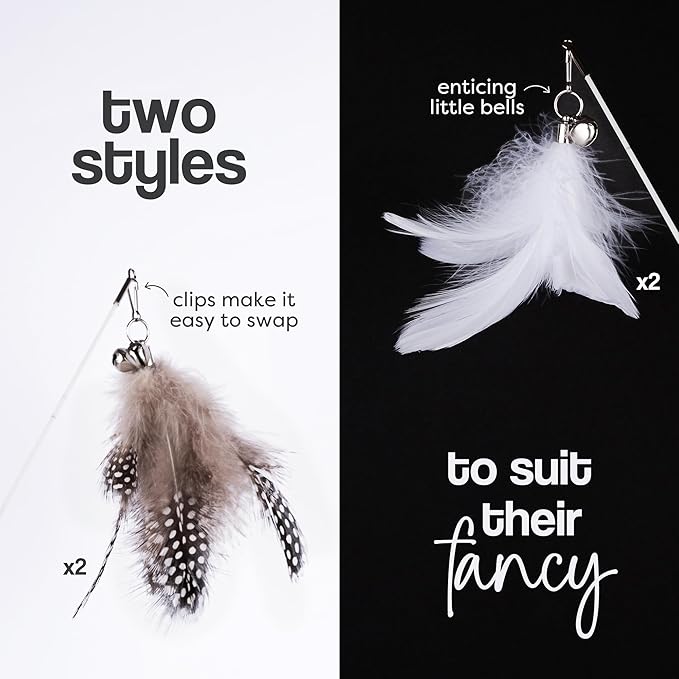 - Quick-Swap Attachments. Swap out feather refills in seconds to match your cat's mood or play style. Great for high-energy cats or kittens with short attention spans