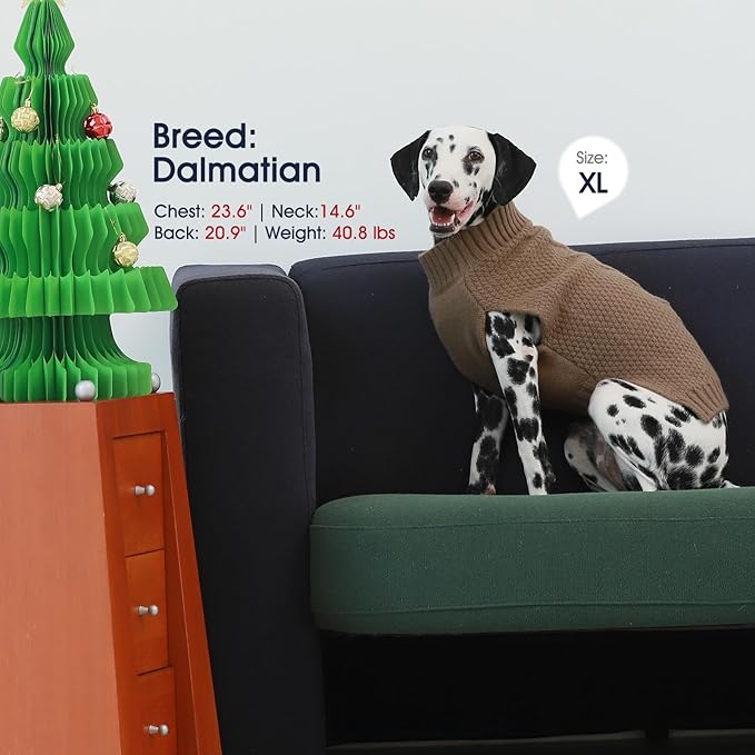 IECOii Big Dog Sweater - XXXXL Winter Coat for Extra Large Dogs, Warm Khaki-4XL Knitwear for Doberman, Great Dane