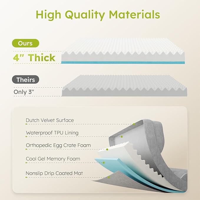 - Orthopedic Support:CWAWZ's large breed dog bed is filled with a 4" thick layer of high density orthopedic foam to cushion dog's joints and provide optimal support as they sleep, especially suitable for older dogs with anxiety and large dogs with arthritis