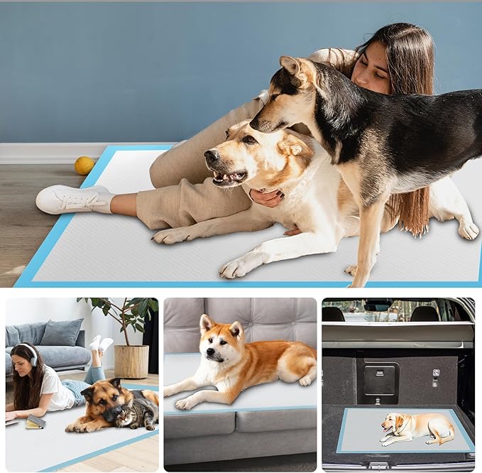 - Extra Large & Multi Purpose: The large size-36"Wx36"L pee pads are ideal for small to large size pets, such as puppies, kittens, cats, rabbits, ducks, squirrels, guinea pigs, birds, and other house training pets, great for pet potty training, aging or sick pet assist, travel carrier, puppy tray, on car, carpet, bed, covering water and food bowl spillage as well