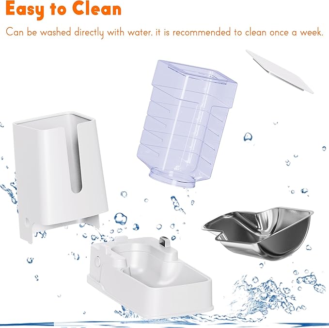 - Automatic Cat Feeder With Food Grade Stainless Steel Bowls: We upgraded our cat feeder, both cat food dispenser and cat water dispenser equipped with detachable stainless steel bowls, which is easy to clean and diswasher safe; Also, the PET and PP materials of the cat automatic feeder are BPA-free, resistanting to drop and pressure, and can be washed directly with cold water (can be washed by hand only ). It is recommended to wash once a week