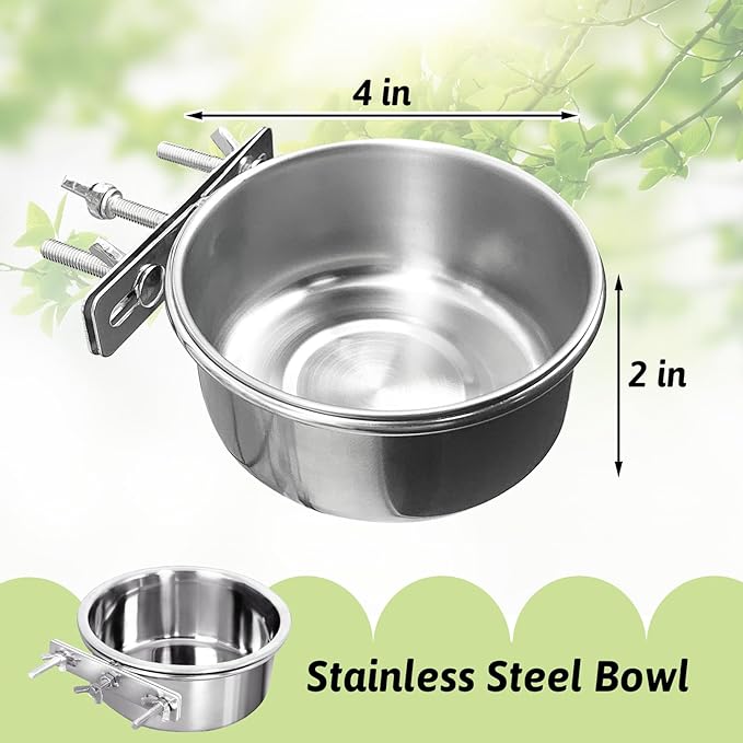 - The Bird Bowl Is Safe: All household items stainless steel food and water cups. Feed your feathered friend in durable