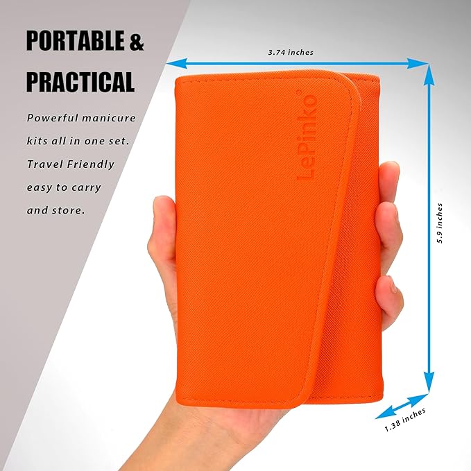 Nail Clippers Set for Thick Toenails and Fingernails, Heavy Duty Podiatrist Clippers for Ingrown Nails, Manicure Sets with Travel Leather Case, Gifts for Stocking Stuffers Men Women, 6PCS Orange