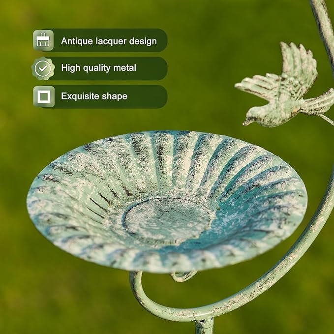 - 🌺VINTAGE DESIGN:The retro style of this metal bird bath is reflected in its unique old-fashioned details, giving people a feeling as if it has been baptized by time. It not only shows the nostalgic rural aesthetics, but also adds a sense of historical precipitation