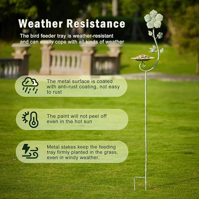 - 🌺GARDEN DECOR: The metal bird feeder with stake, which can be moved anywhere in the yard. Insert it into the best location for bird watching and attract feathered friends to come and feed and perch