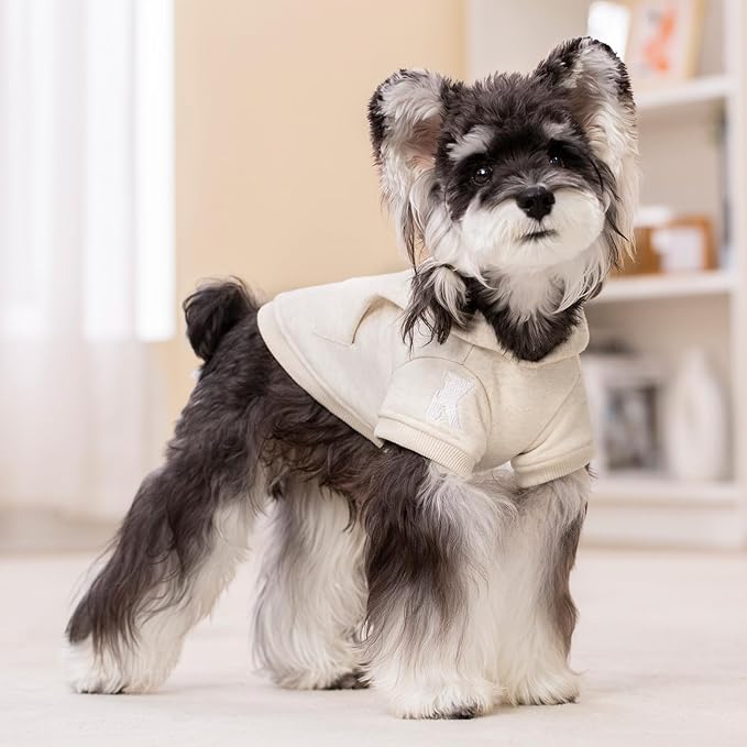 Koneseve Dog Hoodie Fleece, Cat Sweater Warm with Pocket - Soft Clothes for Daily Wear, Basic Hooded Sweatshirts, Winter Coat Clothing, Comfort Tee Shirt Fit for All Breeds Pet - Beige - XL