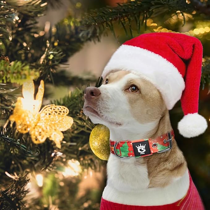 TSPRO Tactical Dog Collar 1.25 Inch Wide Thick Dog Collars with Heavy Duty Metal Buckle, Durable, Strong, Adjustable for Small Dogs (Christmas Red S)