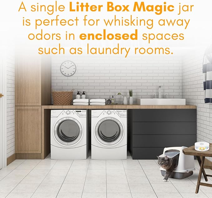 - HIGH-QUALITY LITTER BOX ODOR ABSORBER INGREDIENTS - Our cat litter smell eliminator is crafted with the best ingredients that effectively neutralize litter box odor. Each component is carefully selected for its proven ability to eliminate unpleasant smells, ensuring your home stays fresh and clean. Our formula is safe and powerful, absorbing unwanted odors at the source. Experience a cleaner, fresher space with Litter Box Magic’s litter box odor control power!