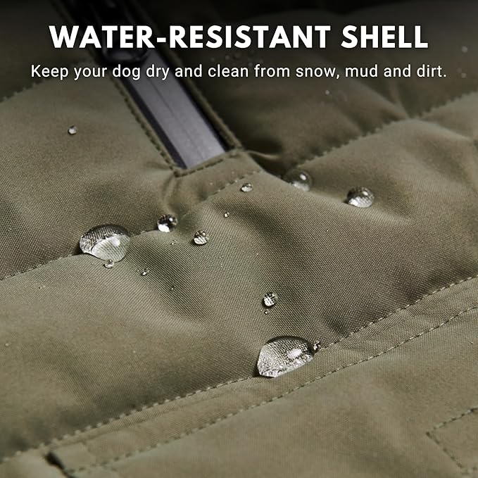 Spark Paws Dog Winter Jacket, Water-Resistant Coat, Warm Reflective Windproof Fleece-Interior, for Medium and Large Dogs - Olive - XL