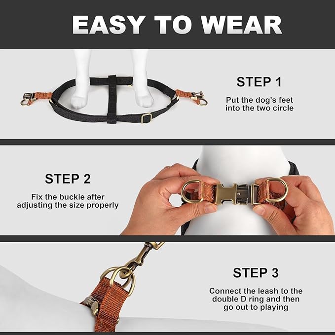 - User-Friendly Design: No more wrestling with complicated gear! Our harness is easy to put on and take off, allowing you to spend more time enjoying outdoor activities with your dog. The adjustable straps ensure a snug and comfortable fit