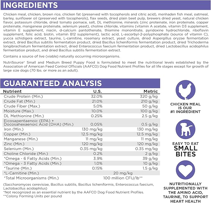 NutriSource Puppy Food for Small and Medium Breeds, Chicken Meal and Rice, 12LB