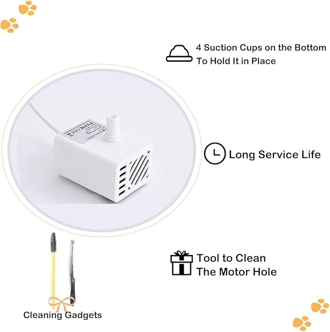 - Super Quiet: With a water pump that measures less than 38 decibels, our pet water fountain is incredibly quiet, ensuring you and your pet are not disturbed by any unwanted noise.