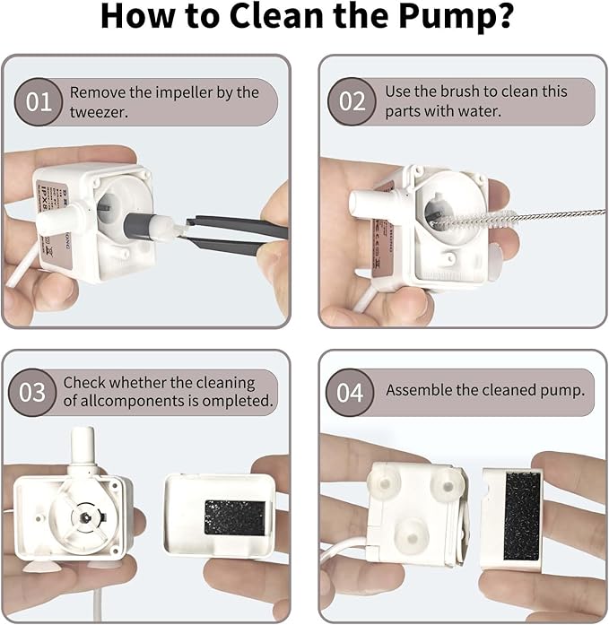 - Easy To Assemble & Clean: Our product comes with easy-to-follow assembly instructions, and the water fountain includes 3 replaceable filters. To maintain your pet's health, we recommend replacing the filter and cleaning the water pump and fountain every 3-5 weeks.