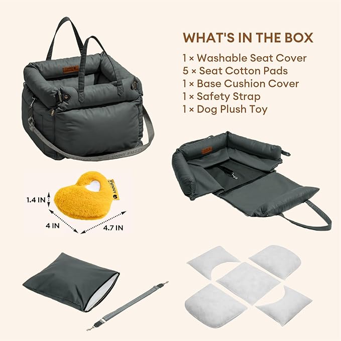- 【Enhanced Safety Features】Safety is our top priority. FUNNYFUZZY car seat is equipped with heightened and thicken padding to reduce impact during travel, and built-in adjustable safety leashes that ensure your pet's safety without compromising on comfort. The anti-slip bottom keeps the seat in place, offering stability even in rough conditions