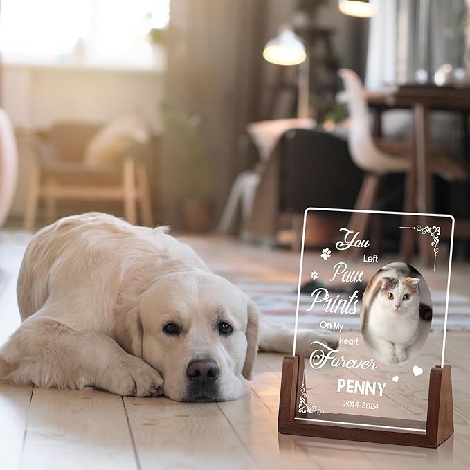 - How to Customize Dog Passed Away Gift: 1. Select the style you like and click "Customize Now". 2. Upload the pictures and text you need to customize 3. Select the size you need and submit the order. You can contact us for consultation at any time for other questions. Daily maintenance of the product: Just wipe the acrylic and base gently with a wet tissue.