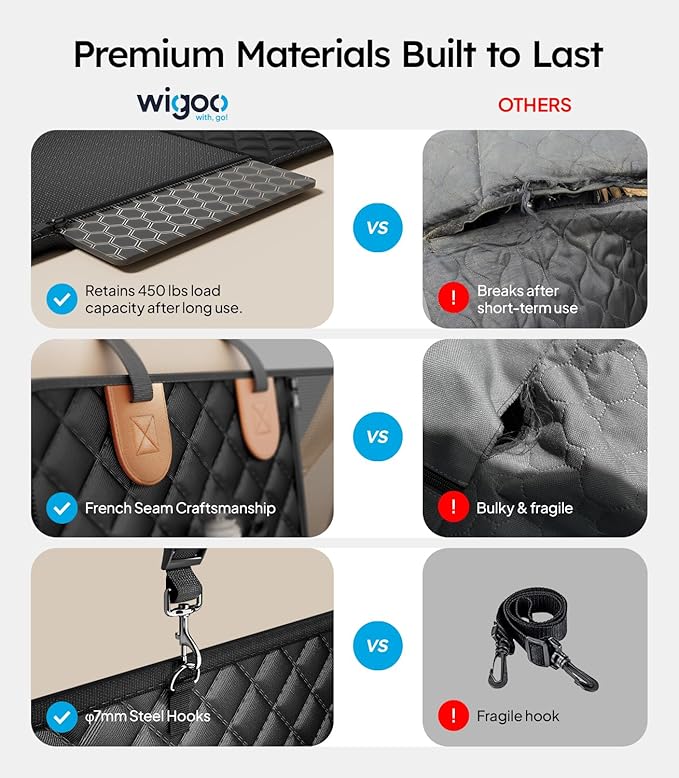 - 【3.0 Full Hard Bottom – 450lbs Load Capacity】:Tired of flimsy covers that collapse under your dog?Your dog deserves better!Our full hard-bottom design holds up to 450lbs and expands seat space by 145%, giving your pet a firm, safe area to relax—no slipping into seat gaps, no joint strain. Crafted with 6-layer premium waterproof and wear-resistant materials for long-lasting durability and all-weather protection.
