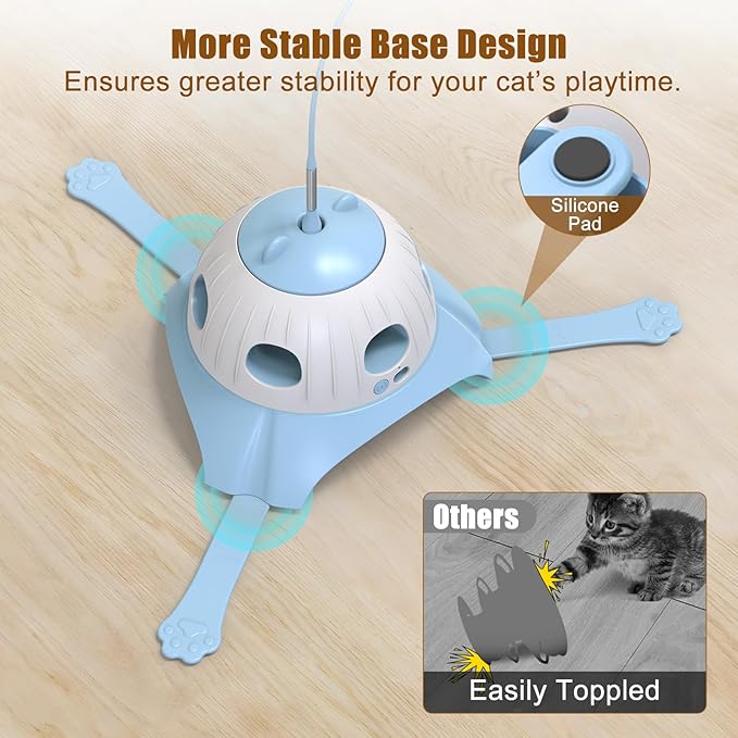 - [Anti-Tip Design - More Stable] - The pet toy features a unique base design that effectively prevents it from tipping over during play, ensuring stability even during the most enthusiastic sessions. Equipped with six silicone non-slip pads on the bottom, this interactive cat toy stays firmly in place, providing a safe and enjoyable play experience for your cat. (NOTE: Unfold the base before use)