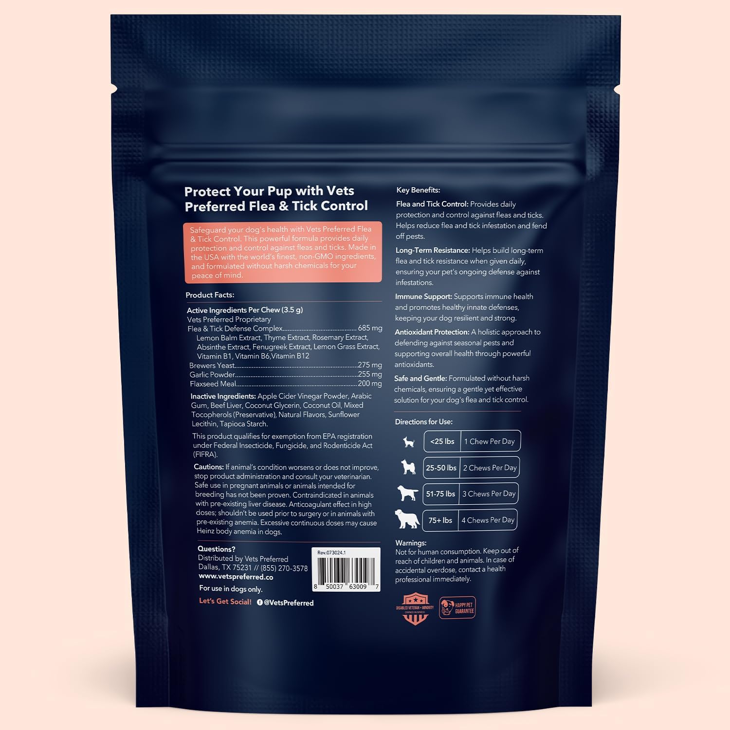 Vets Preferred Flea and Tick Prevention for Dogs Chewable - Daily Defense Without Harsh Chemicals - Immune Support & Antioxidant Protection - Beef Flavored - 90 Soft Chews
