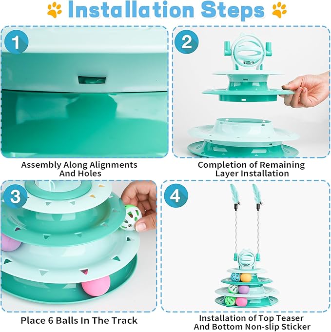 - Closer to Your Cats:Play without limits, people and pets closer, cat toys using circular track with 6 balls and 2 cat teasers, a variety of forms to play without limits,closer to you and your cat!
