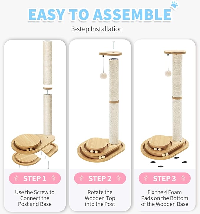 - 【3-Tier Cat Toy Board】:The cat scratchers pole is designed with 3 levels of tracks and 4 moving balls to attract kitty’s attention! Your cat will adore batting, swatting, and pouncing the playing balls as they entertain their natural instincts to hunt.