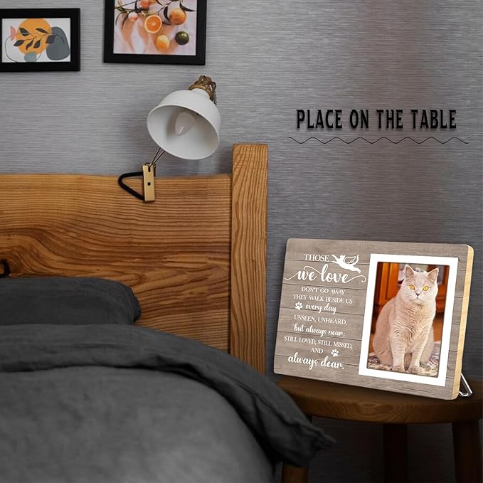 - Cat Memorial Picture Frame: Losing a beloved pet is never easy, but their love stays with us forever.This memorial cat picture frame features heartfelt words, keeping their memory alive and bringing comfort to your heart.