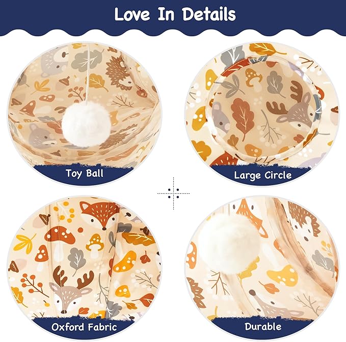 Tempcore Pet Cat Tunnel Tube Cat Toys 3 Way Collapsible, Cat Tunnels for Indoor Cats,Kitty Tunnel Bored Pet Toys Peek Hole Toy Ball Puppy, Kitty, Kitten, Rabbit Beige Deer