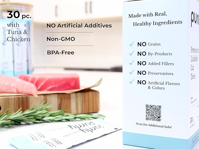 - INTERACTIVE & BONDING EXPERIENCE - Purrly's lickable puree encourages a unique and interactive way to treat and bond with your cat. You can offer the treat directly from pouch, your finger or a spoon, creating a moment of shared enjoyment and strengthening the connection between you and your feline friend. These treats can become an integral part of playtime, training sessions, or simply offering a small token of affection, fostering a deeper and more rewarding relationship with your cat.