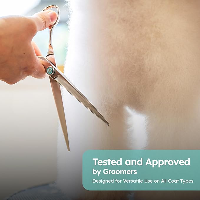 - Straight Design for Versatile Grooming – 7” straight blades ideal for full-body trims and shaping on most dog breeds. Provides clean, even cuts without pulling or snagging, ensuring smooth, efficient grooming sessions.