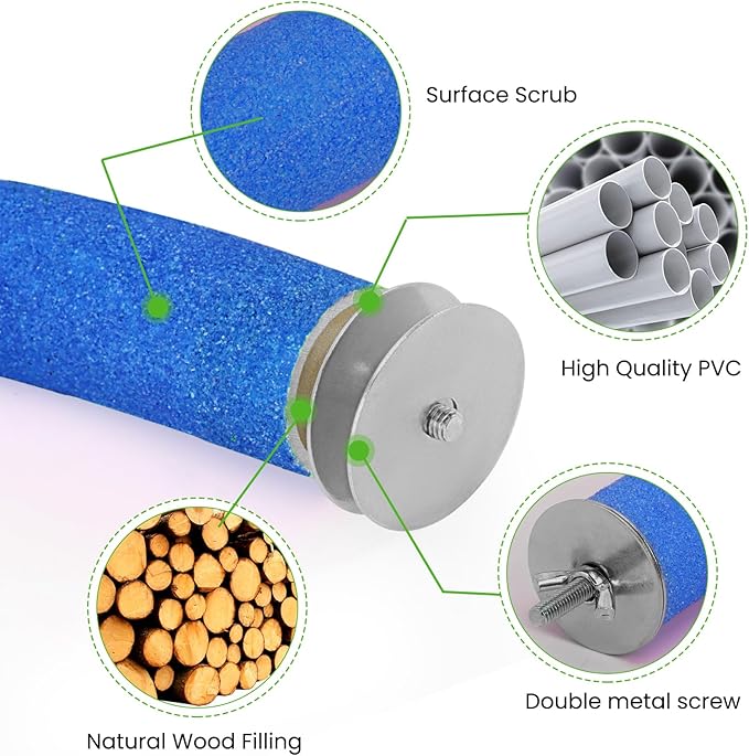 - 【Material】: The bird perch rough-surface is made of natural quartz sands and high quality PVC inside with food grade color, non-toxic materials.
