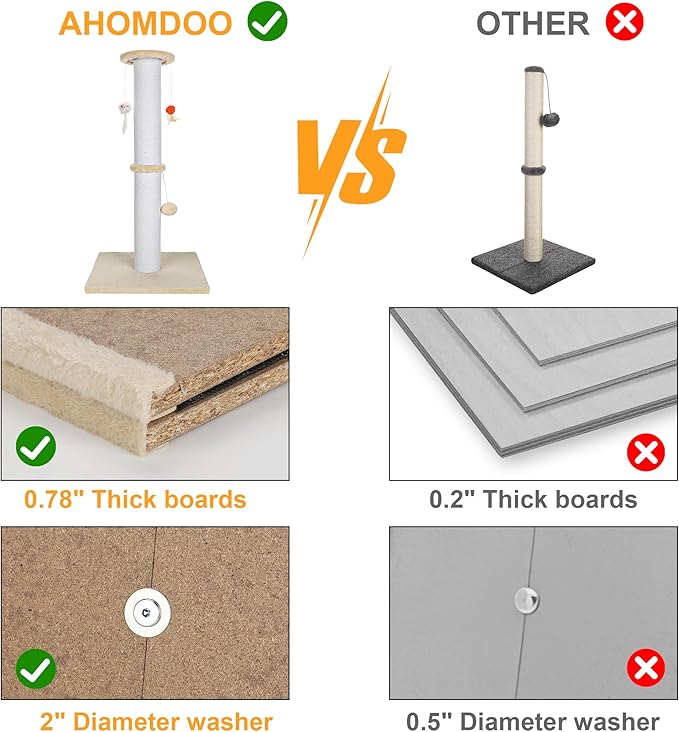 - Easy to Assemble: Scratching post is designed for quick and hassle-free setup. With simple instructions and all necessary tools included, you'll have it ready for your cat to enjoy in no time. No complicated steps β just a straightforward assembly process so your cat can start scratching, climbing, and playing right away.