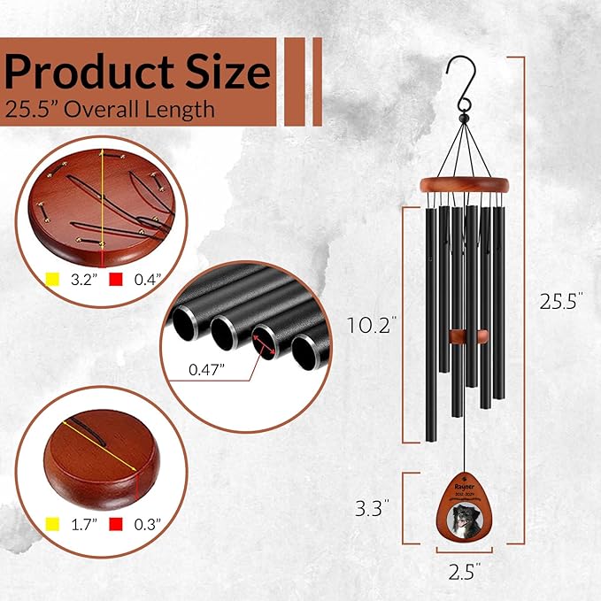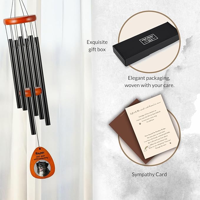 - Deep and melodious tones: When a gentle breeze blows, six thick aluminum tubes create soothing melodies in your yard. personalized pet wind chime became the perfect cat dog remembrance gift, capturing their cherished moments together.