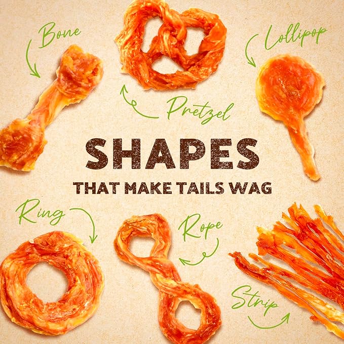 - Hypoallergenic: These chews are rawhide-free, grain-free, and made without common allergens, fillers, or artificial additives β a cleaner, allergy-friendly option for dogs with food sensitivities or intolerances. A trustworthy hypoallergenic dog treat made with simple, wholesome ingredients your pup will love.