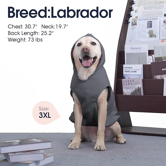 IECOii XXL Dog Hoodie for Large Dogs, Fleece Dog Sweatshirt for Large Breed Male Female Dogs,Pet Pouch Hoodie Winter Sweater Coat with Leash Hole, Warm & Lightweight Outfit for Pitbull, Grey, 2XL