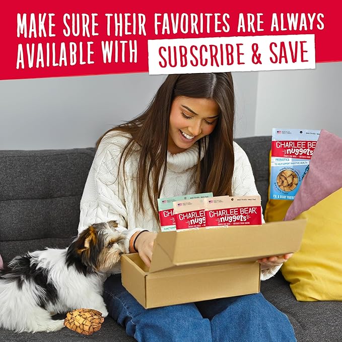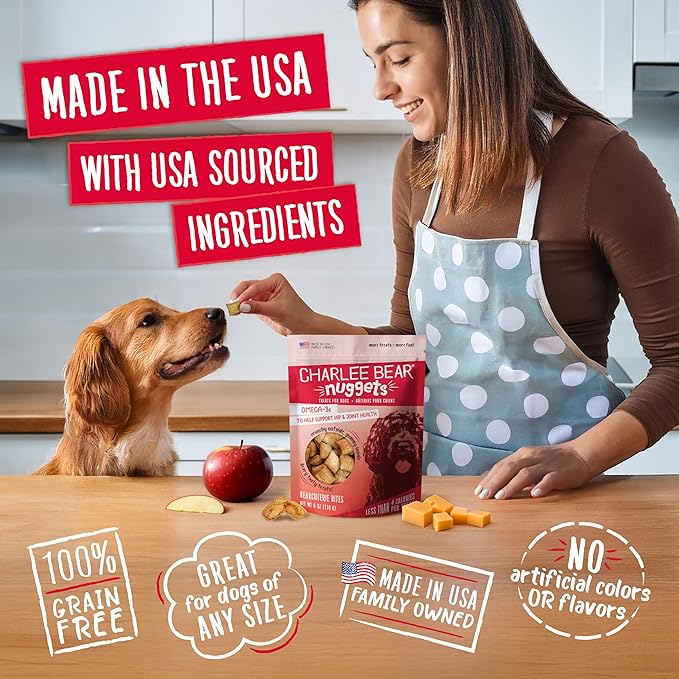 Charlee Bear Nuggets Healthy Dog Treats with Probiotics and Antioxidants to Support Digestion, Immunity, Skin and Coat, 6oz Bags (5), Made USA