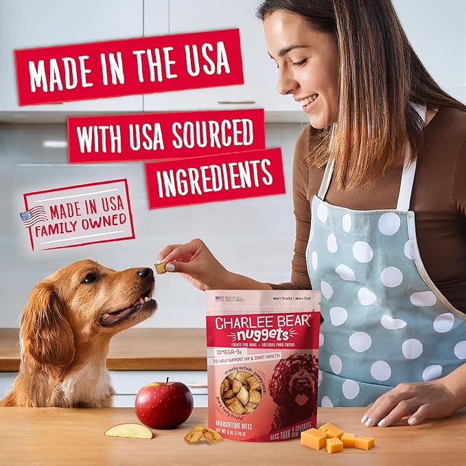 Charlee Bear Nuggets to Support Hip & Joint Health, Bearcuterie Bites with Omega 3s, Crunchy Outside and Creamy Inside, Real Apples, Cheese, & Honey, 6oz Bags (2), Made USA