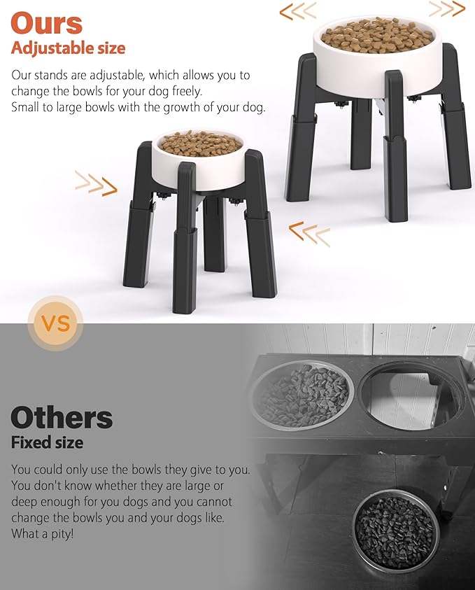 CZPET Dog Bowl Stand with Adjustable Height and Width [2 Pack, Stand Only], Elevated Pet Water & Food Feeder for Medium and Large Pets, Stable and Anti-Slip Raised Bowl