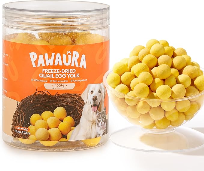 - 【Grain-Free, Healthy Treat for All Life Stages】Ideal for dogs and cats of all breeds and life stages, PAWAURA Freeze-Dried Quail Egg Yolk is a healthy, nutrient-dense snack that supports your pet's overall well-being. Rich in vitamins, minerals, and healthy fats, it promotes a shiny coat, strong immune function, and overall health with every bite.