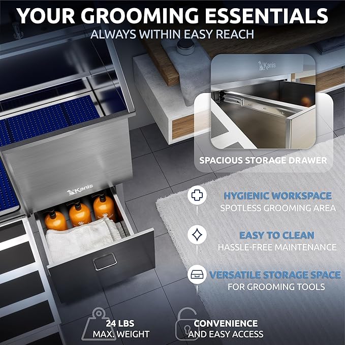 - UTILITY & GROOMING STATION - KANIS Proudly introduces The most Complete and Versatile dog bathtub! Suitable for general home cleaning and pet washing, our grooming sink is a must-have in a multi-functional utility room, laundry, or garage. Superior Quality, Durable & Rust-resistant 304 Stainless Steel, No Leak Fully Welded Construction and Easy to install.