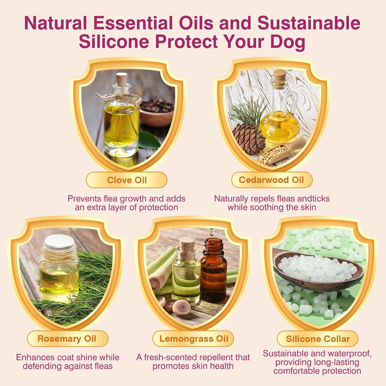 Natural Flea and Tick Collar for Dogs - 4 Pack, 8 Months Long-Lasting Protection, Waterproof, Adjustable Size for Small Medium and Large Dog