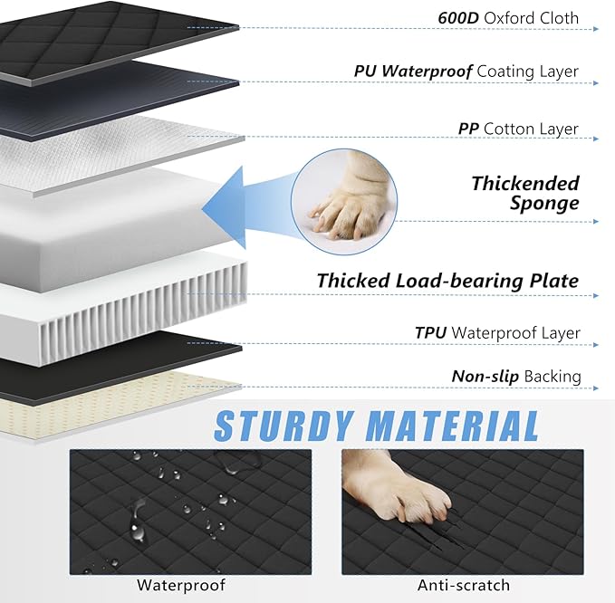 - SURABLE MATERIALS TO INCREASE THE ACTIVITY AREA OF YOUR DOG IN THE BACK SEAT: Our dog car seat cover for back seat is made of 600D Oxford fabric, which is overall tear-resistant and non-slip. It covers the rear foot pit area all the way to the back of the front seat, greatly increasing the dog's activity area and allowing the dog to freely stretch its limbs.