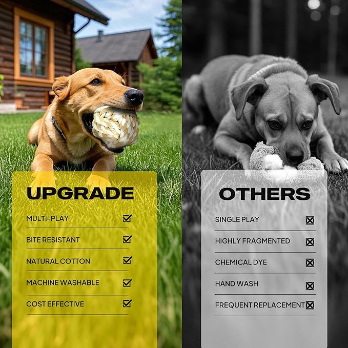 - 【100% Natural & Safe Cotton Ropes】Made with undyed, chemical-free cotton fibers—no toxins or artificial dyes. Safe for aggressive chewers who love to gnaw, tug, or carry their toys all day