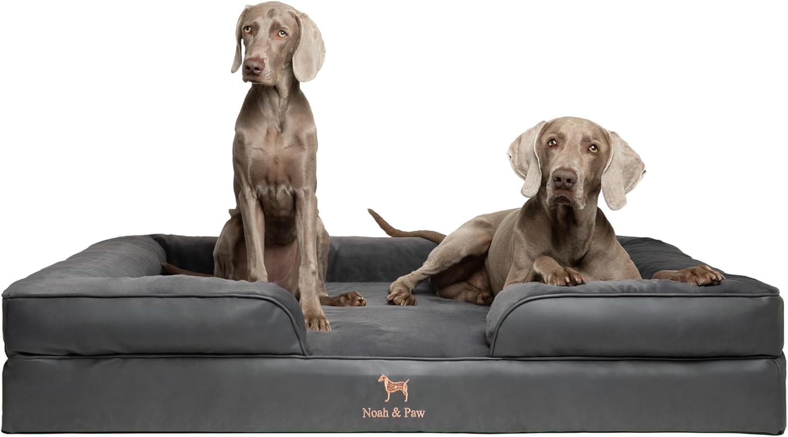 NOAH & PAW Giant Dog Bed XXL, 55x45x11 Inch, Orthopedic Dog Beds, Eggshell Memory Foam Infused with Cooling Gel, Inner Cover, Waterproof, Machine Washable (Faux Leather Sofa Collection)