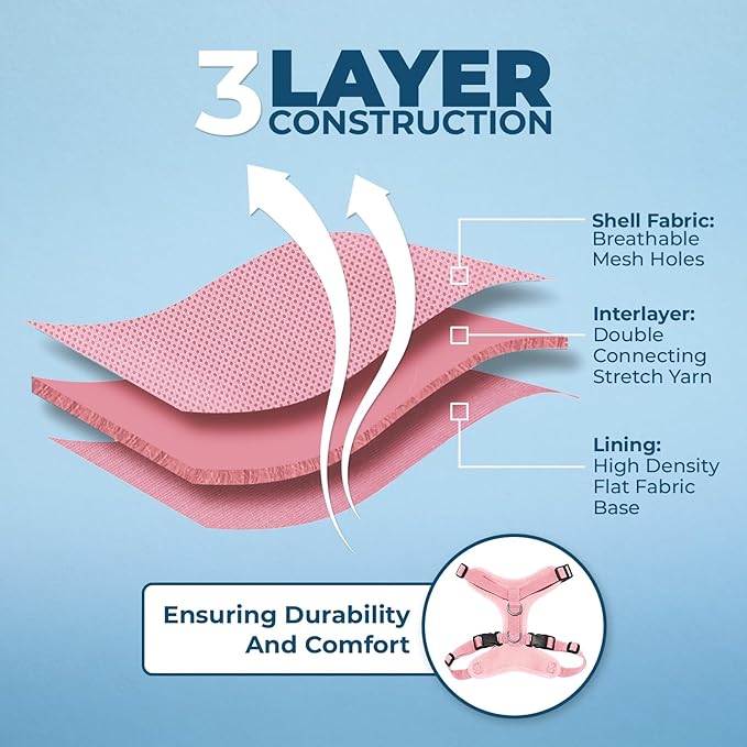 - All Weather Air Mesh: Crafted from soft, breathable air mesh, this fully adjustable, lightweight, and escape-proof pet harness is perfect for walks all year round!