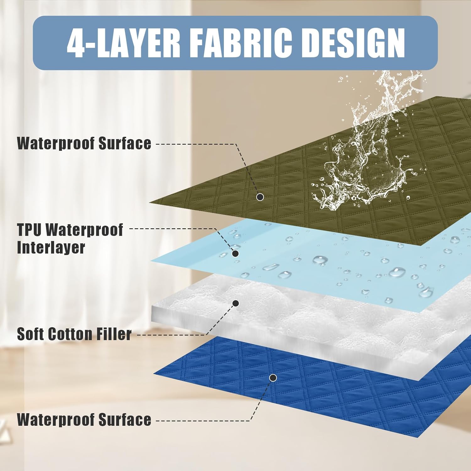 - [PROTECT FURNITURE] Waterproof couch covers for pets are crafted from classic leakproof quilted fabric, soft, comfortable, sturdy and long lasting, protect your sofa, bed and furniture from dog urine, saliva, pet hair and daily stains