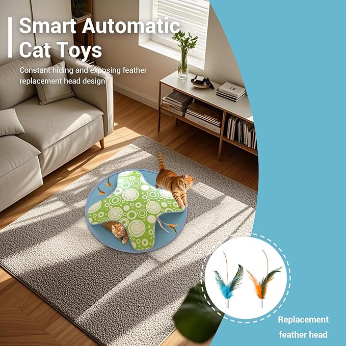 - 【Ultra-Quiet Motor & Replaceable Feather Attachments】Designed for peaceful play, the low noise motor won’t disturb your home. Swap replaceable feather attachments (sold separately) to refresh the fun—ideal for long-lasting cat toys that grow with your pet’s curiosity