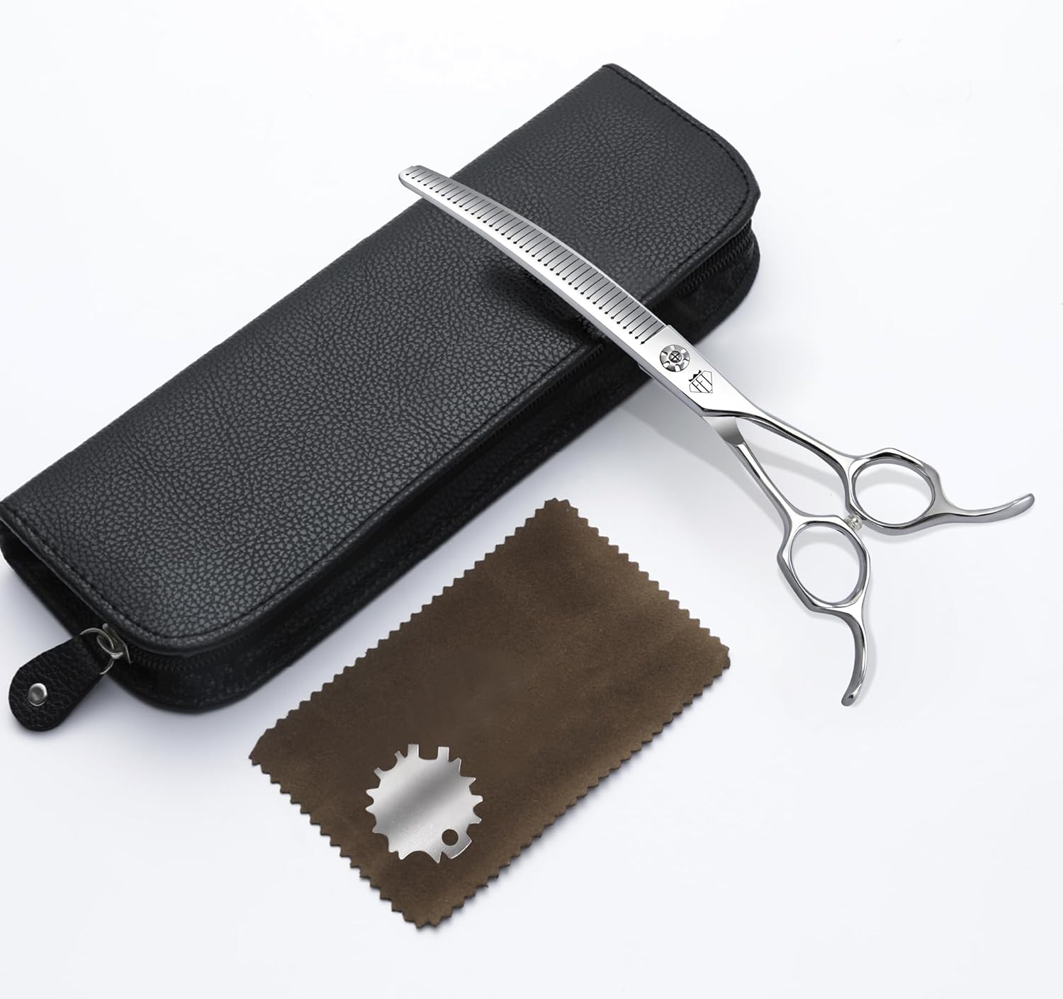 Professional Curved Thinning Scissors for Dog Grooming, 30-Degree Curvature, Japanese 440C for Trimming Dogs Cats and Other Pets face and paws (Curved Blender)