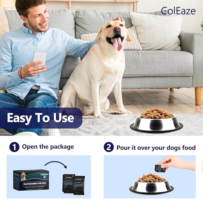- [DOG HIP & JOINT SUPPLEMENT] Glucosamine for dog delivers a powerful blend to support cartilage health. Each sachet of dog joint supplement powder provides deep nourishment for flexible movement across all breeds.