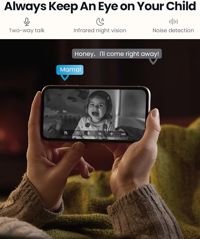 - 【See Every Detail, Day & Night】 Our indoor security camera lets you monitor every corner of your house in stunning 3MP and 2K resolution, even at night with advanced night vision. With this reliable baby monitor with camera and audio, you can watch your baby take their first steps in the living room or peacefully sleep in their crib