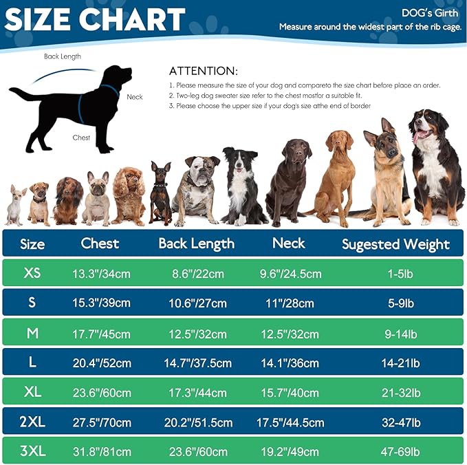 - 【 Sweaters for medium-sized dogs 】Pet sweaters, color and size options suitable for both male and female dogs. Please prioritize measuring the pet's chest circumference and back length, and choose the appropriate size and reference weight based on the To a Turn size chart.