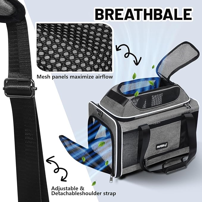 - EXPANDABLE AND COLLAPSIBLE TOP - Measuring 18 x 11 x 11 inches (LxWxH), our sturdy cat carrier features an innovative pop-up top that adds an extra 3.5 inches of height, reaching a total height of about 14 inches when fully extended. It can be conveniently compressed to slide under the seat, while also providing your pet with sufficient headroom to stretch or stand during travel